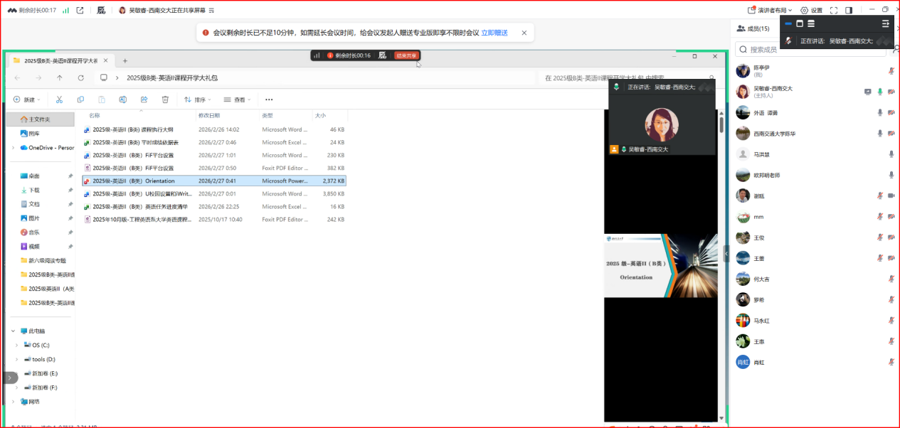 本次新学期工作会议节奏紧凑、内容务实,有效统一了课程组的教学思路,明确了工作重点与职责,增强了团队协作意识,为持续提升大学英语B类课程教学质量开好头、起好步,激励全体教师以饱满的热情投入到新学期的教学工作中。