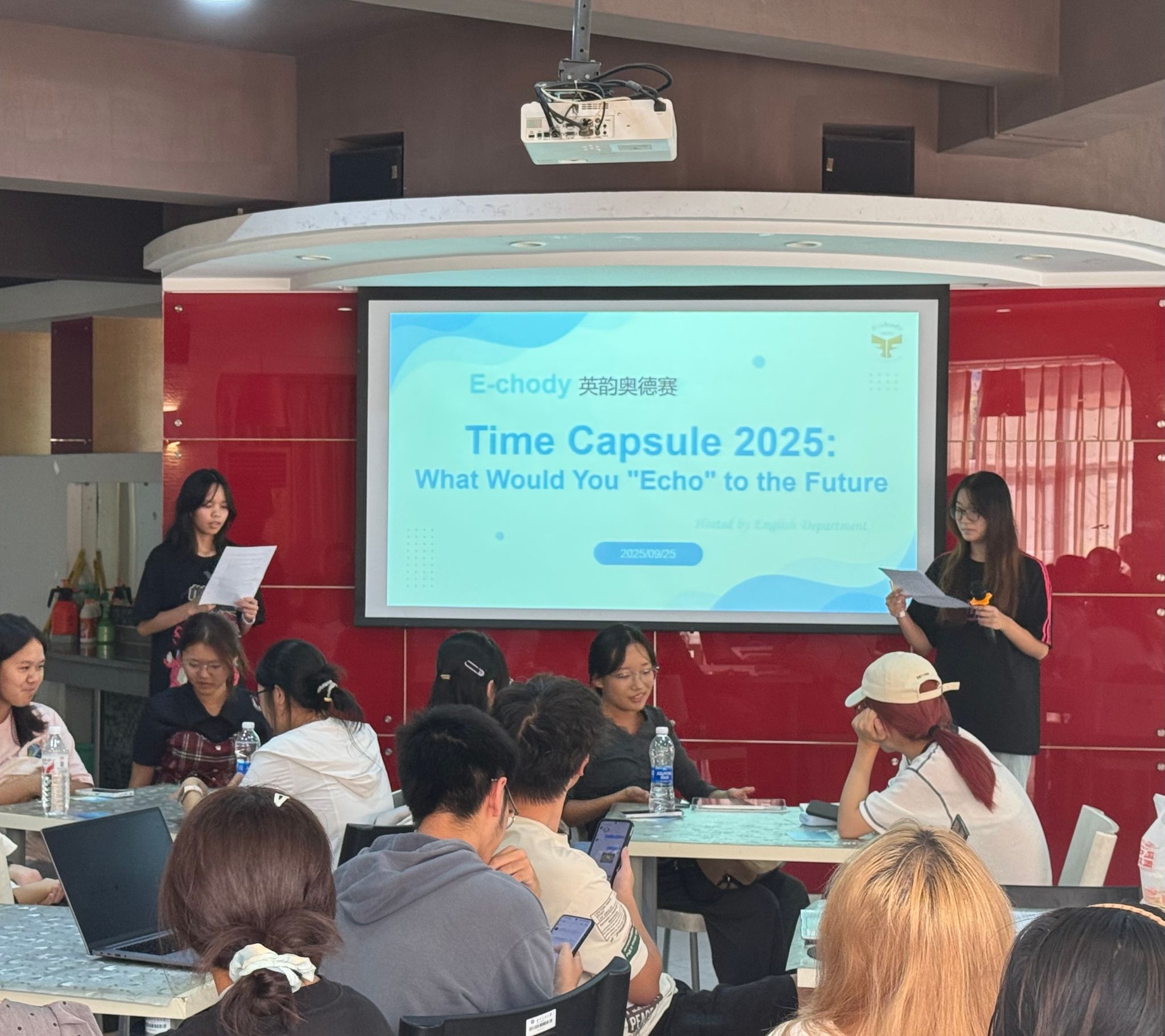 为了帮助同学们在新学年明确学习方向、提升英语交流能力,同时搭建思想碰撞与经验分享的平台,我系以 “What Would You ‘Echo’ to the Future” 为主题,于 9 月 25 日下午 16:00-17:00 在外语沙龙举办 “E-chody” 英语角首期活动,让英语交流与成长思考在回顾过往与规划未来的互动中碰撞出精彩火花。本次活动由2024级英语系1班沈敬婷、李艾虹、李智淼、夏和硕、吴竞航、王心怡、谭晶同学以及英语角策划组共同策划,吸引了英语系各年级众多学生积极参与。