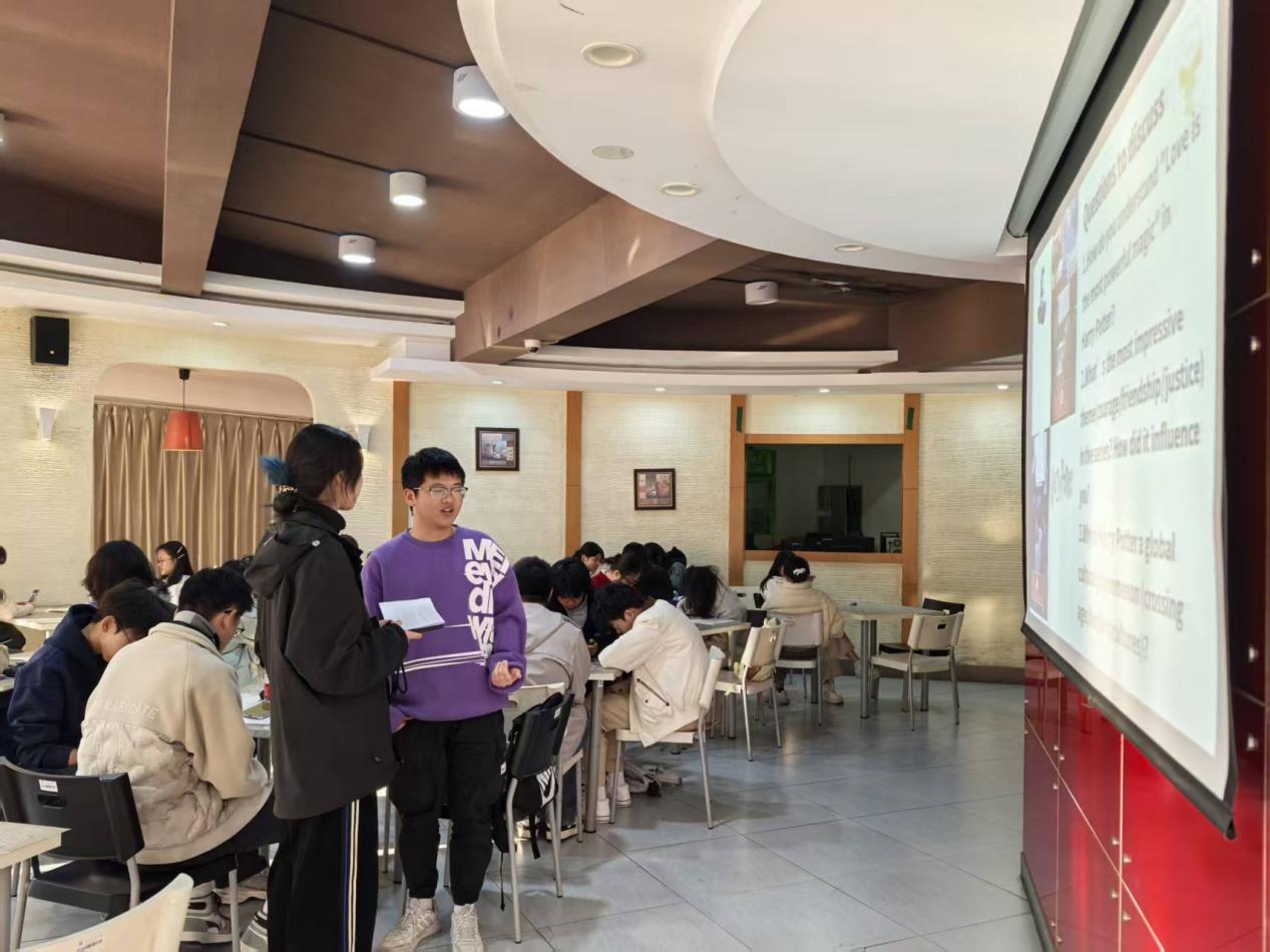 在自由分享与讨论环节,同学们围绕哈利・波特系列展开热烈探讨。针对 “如何理解‘爱是最强大的魔法’”“系列中最令人印象深刻的核心主题及其影响”“哈利・波特为何能跨越年龄、国界和文化成为全球性文化现象” 等核心问题,大家各抒己见、畅所欲言。有同学分享了作品中亲情、友情、勇气等主题对自己的启发,也有同学分析了其全球流行背后的文化传播逻辑。通过思想的碰撞,同学们不仅深化了对作品的理解,更锻炼了英语逻辑思辨与表达能力。