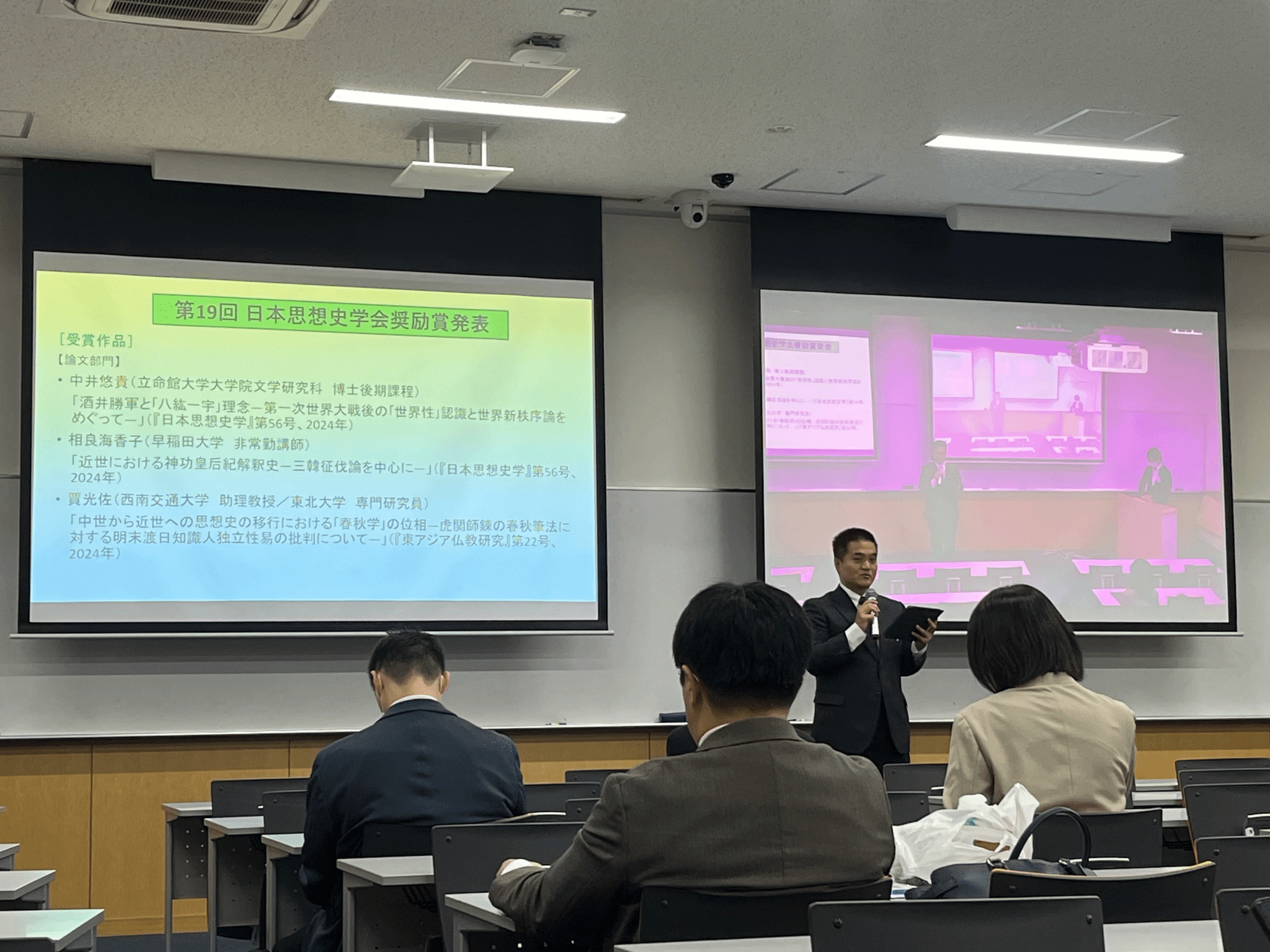 据悉,日本思想史学会成立于1960年代,是日本国内思想史研究领域规模最大、最具权威性的学术组织。 该学会设立的“论文奖”竞争激烈,旨在表彰当年度在思想史研究领域最具原创性与深远影响的杰出成果。日本思想史学会在获奖评语中指出,贾光佐老师的论文“以精致的文本解读为基础,揭示了日本中世至近世思想转型的多元面貌,对佛教与儒教的关系、宋学接受过程、明末渡日知识人的角色等议题提供了重要启发。其视野宏阔、考证严谨,堪称开拓日本思想史研究新局的卓越成果”。