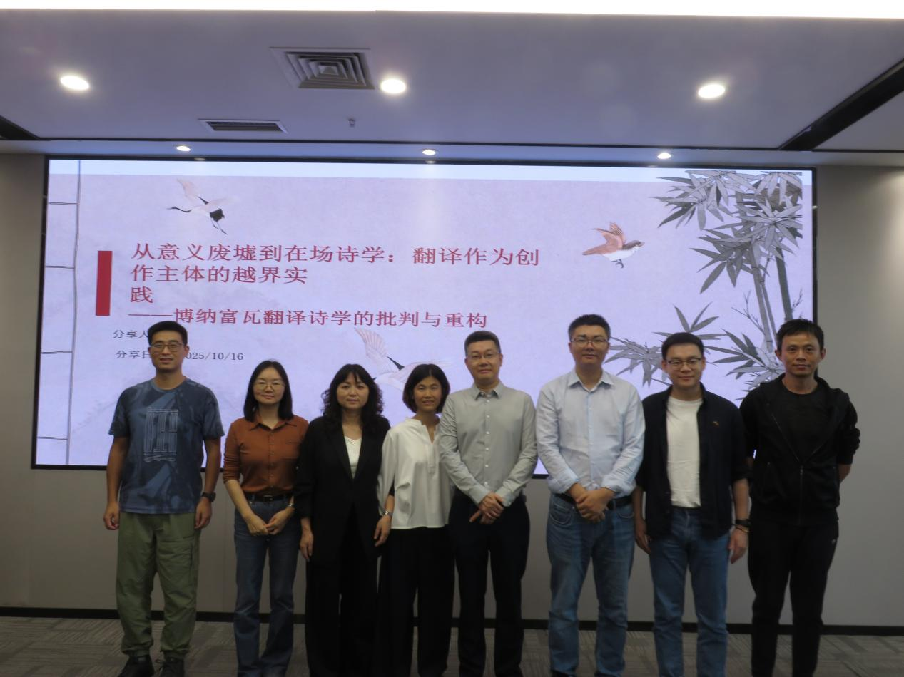 2025年10月16日下午4时,西南交通大学外国语学院2025年第2期“创源大讲堂”讲座在犀浦校区X30820教室举行。本次讲座特邀学院法俄系讲师黄婷博士主讲,主题为“从意义废墟到在场诗学:翻译作为创作主体的越界实践——博纳富瓦翻译诗学的批判与重构”,吸引翻译及相关方向师生参与。活动由25级翻译学硕士生李静茹担任主持人,翻译学科团队的师生参与。