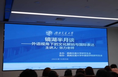 2025年10月9日下午四点,外国语学院在犀浦校区30820会议室举办“外语之窗,文化之桥—跨文化交流的解码与表达”主题讲座,讲座特邀具有四年厄瓜多尔孔子学院公派教师经历的张力老师作为主讲人,2025级研究生参加。本次讲座聚焦跨文化交流的核心议题,以孔子学院为重要载体,南美与厄瓜多尔的文化为依托,为同学们深入了解中外文化互鉴、人类命运共同体的构建起到了积极作用。