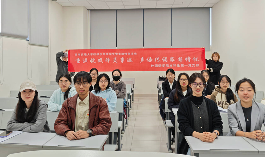 为深入学习贯彻习近平新时代中国特色社会主义思想,纪念中国人民抗日战争暨世界反法西斯战争胜利80周年,外国语学院本科生第一党支部紧密结合专业特色与校史资源,于近期成功组织开展以“重温抗战译员事迹,多语传诵家国情怀”为主题的系列党建活动。本次活动分为三个阶段有序推进,取得了显著成效。