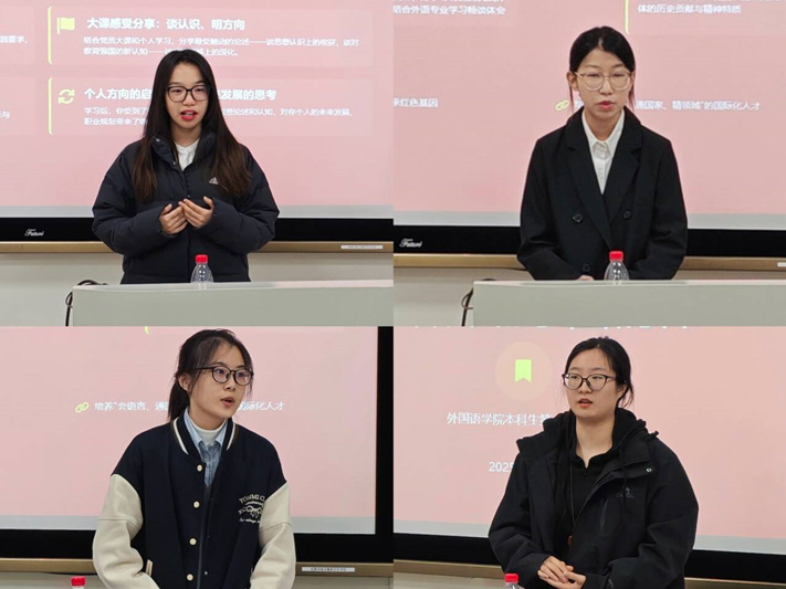 在前期学习基础上,支部召开专题组织生活会。在前期学习基础上,支部召开专题组织生活会。会议由前“红路”理论学讲团团长、专硕党支部党员杨倩同志作“言为心声,译通中外”主题分享。她结合自身理论宣讲经验,以交大西迁历史为背景,生动讲述了抗战期间交大师生投身译员工作的感人事迹,并深入解读其精神内涵。与会党员结合多语种素材与史料复印件,踊跃分享学习体会,并就“外语人的红色初心与时代使命”展开深入研讨。