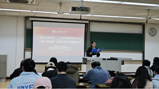 为强化研究生党员的责任感、使命感,充分发挥先进典型的示范引领作用,外国语学院专硕党支部联合心理研究与咨询中心2024级研究生党支部、集成电路科学与工程学院研究生党支部,于2025年12月19日晚共同举办西南交通大学第十三期研究生党建“领航先锋”工程活动——研小扬精研理论读书班之“初心与使命”成长分享会主题微党课,引导研究生党员在思想碰撞中坚定理想信念,在榜样引领中明晰奋斗方向。