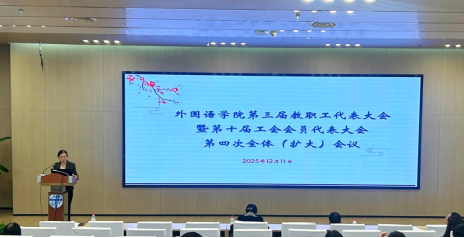 12月11日下午,外国语学院召开教职工大会暨第三届教职工代表大会、第十届工会会员代表大会第四次全体(扩大)会议。会议由工会主席余清秀副院长主持。