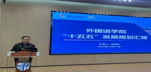 随后,俞森林院长作了《外国语学院“十五五”发展规划》报告。报告系统梳理了学院在“十四五”期间的建设成效与短板不足,分析了“十五五”时期面临的发展机遇和挑战,并明确了未来发展的核心任务与实施路径。俞森林号召全院教职工凝心聚力,把握趋势,聚焦关键领域寻求突破,共同实现学院发展的新跨越。