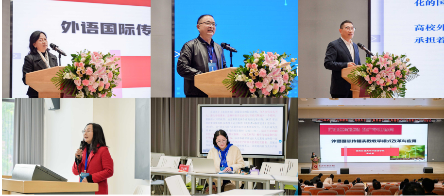俞森林教授受邀担任主论坛主持人。李成坚教授在主论坛上作“行业区域驱动、政产学用协同:外语国际传播实践教学模式改革与应用”主题报告。报告阐述了学院近六年在教学资源、内容特色、实践评价与体制机制方面开展的改革与创新实践,并结合具体案例介绍了学院依托规范化机制与数字化工具,打造实践教学新形态,提升学生国际传播能力与综合素养的工作实践。