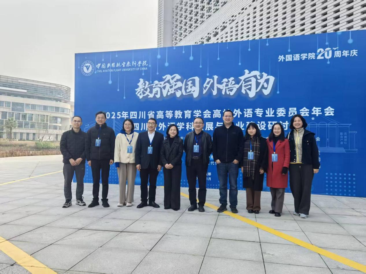 2025年11月29日,2025年四川省高等教育学会高校外语专业委员会年会暨外语学科发展与专业建设研讨会在中国民用航空飞行学院召开。学院党委书记李成坚教授、院长俞森林教授、副院长易红副教授、副院长黎明教授以及系部和学术团队负责人出席会议。