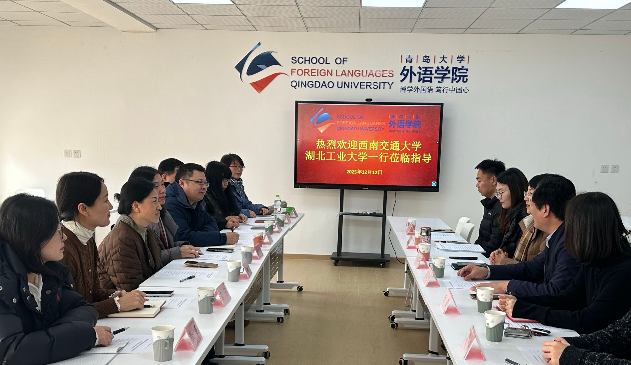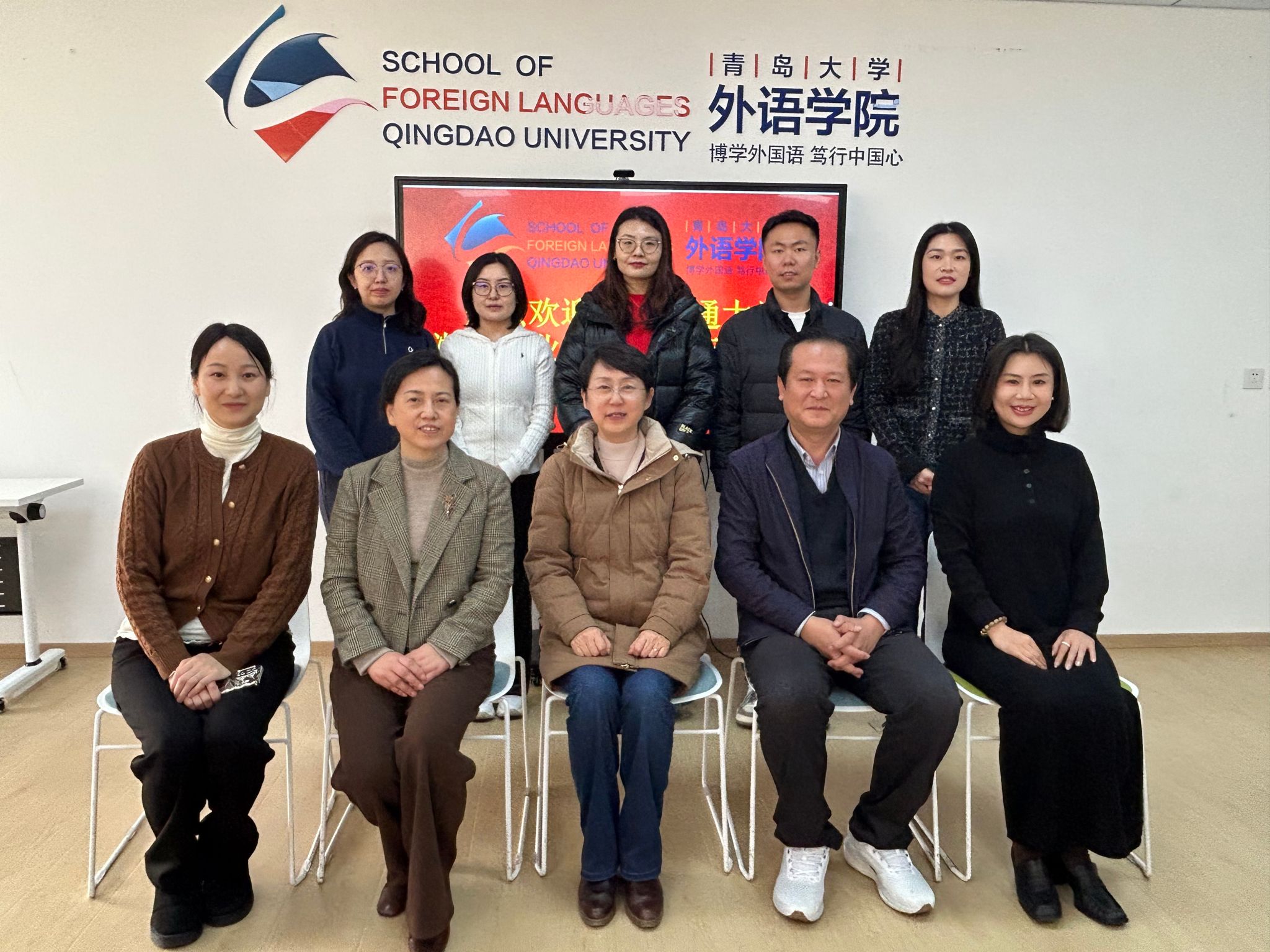 为学习借鉴先进工作经验,进一步推动我院基层党建与学生工作提质增效,2025年12月12日,我院党委书记李成坚、副书记李芹一行赴青岛大学外国语学院开展调研交流。青岛大学外语学院书记陈崇研、院长卞建华、副书记于苗等参与座谈。