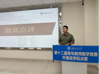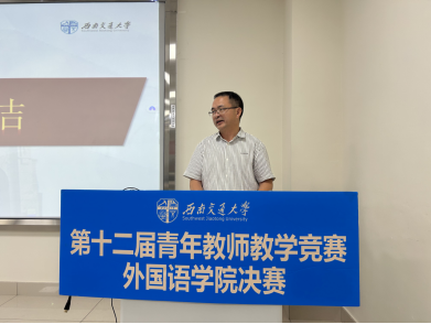 为深入贯彻习近平总书记关于教育的重要论述,全面落实立德树人根本任务,弘扬教育家精神,提升青年教师教书育人能力,西南交通大学外国语学院第十二届青年教师教学竞赛决赛于 2025年9月25日下午在犀浦校区成功举办。本次竞赛作为学院加强高质量师资队伍建设、服务教育强国战略的重要举措,以“以赛促教、以赛促学” 为宗旨,激发青年教师更新教育理念、掌握现代教学方法,为学校“双一流”建设增添动力。