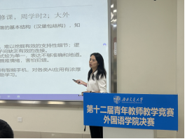 决赛中,6位参赛教师依次登台,展示了扎实的专业功底、创新的教学设计和娴熟的课堂驾驭能力。参赛课程涵盖 “日文报刊导读”“国际工程口译与谈判”“现代教育技术”“学术英语写作”“英语 II”“英语说明文读写” 等多门课程,体现了外国语学院课程建设的多样性与前沿性。评委从教学内容、教学方法、语言表达、课堂互动等多维度进行综合评价。
