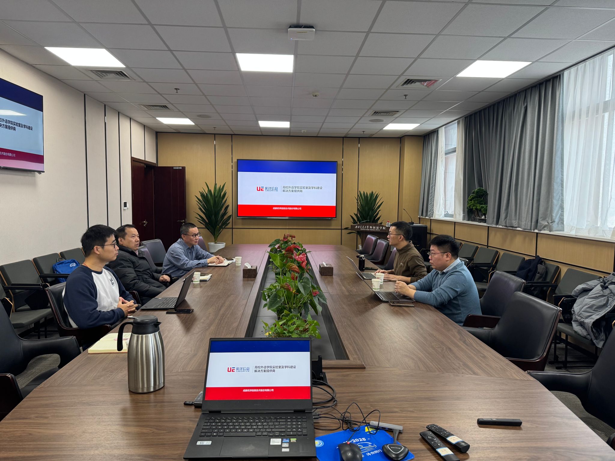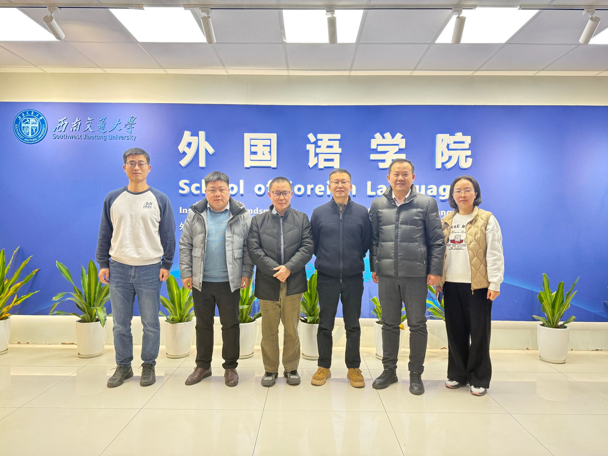 2025年12月18日上午9:30,成都优译信息技术股份有限公司CEO张马成、市场部部长彭成超一行到访西南交通大学外国语学院,双方围绕校企合作相关事宜展开座谈交流。西南交通大学外国语学院教学主管曾祥敏、翻译中心主任戴若愚、翻译中心秘书谢攀及研究生教务员席文来出席本次座谈会。