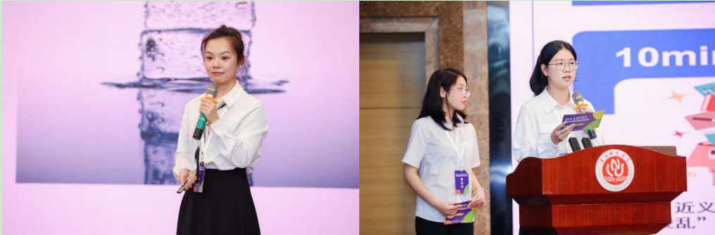 现场展示环节,龚子依与歌笙同学共同上台说课,逻辑清晰、表达流畅,从教学对象分析到教学流程设计,层层递进,展现了团队对教学内容深入浅出的把控能力。王怡欣同学进行现场教学片段演示,生动还原课堂互动场景,赢得了现场评委与师生的广泛关注与高度好评。