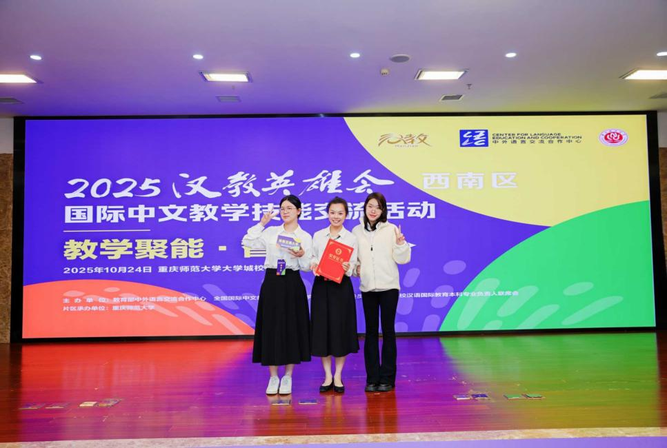 最终,团队获得2025“汉教英雄会”西南区国际中文教学技能线下交流活动“最佳教学设计团队”荣誉称号。
