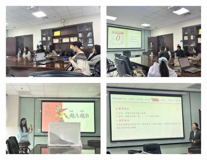 活动中,五位参赛选手依次展示了精心准备的说课与试讲内容,充分展现了他们对教学内容的深入理解与创新设计。随后,各位指导教师从多个维度对选手的表现进行了细致点评,并提出了具体改进建议。针对PPT设计,老师们强调了内容简洁性、逻辑性与视觉呈现的协调;在教学内容设计方面,建议选手们注重知识点的层次性与汉语学习者认知规律的契合;此外,还特别对语音教学环节进行了重点打磨,强调发音示范的准确性与教学方法的多样性。